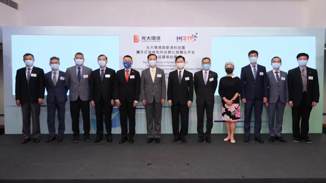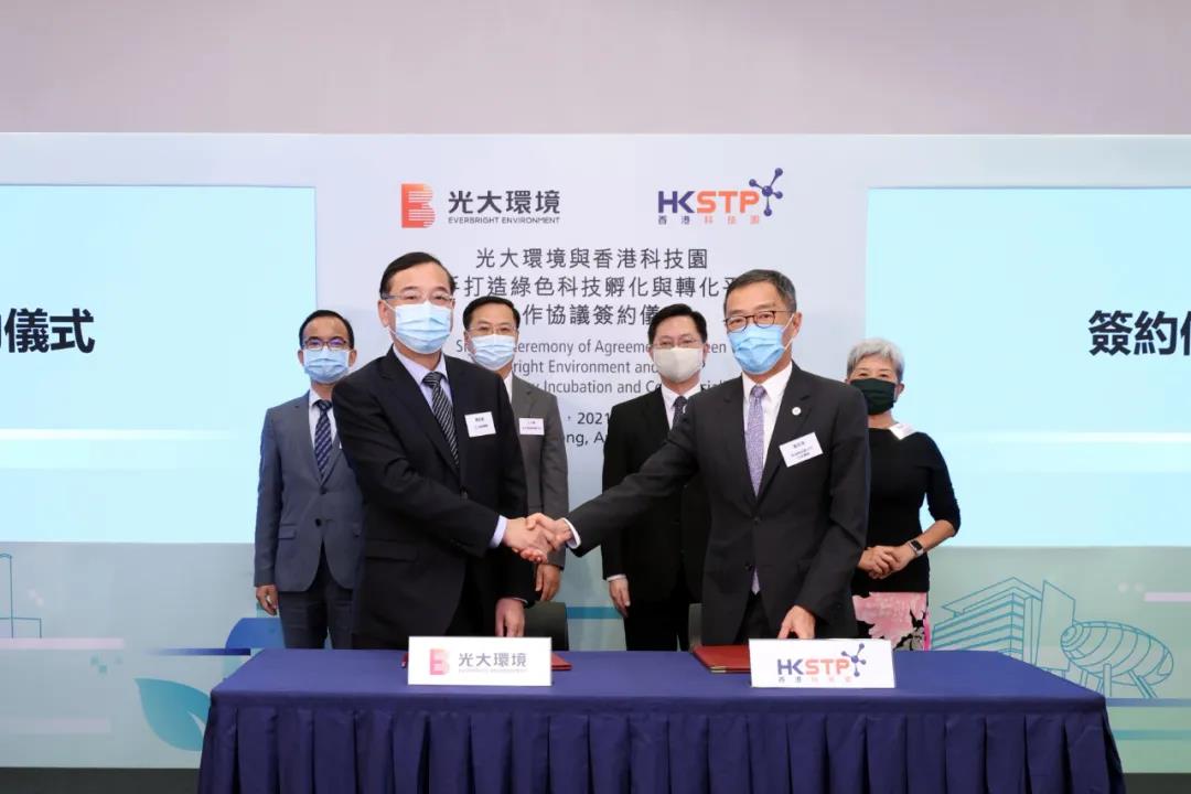 2021年8月31日,香港-中国光大环境(集团)有限公司(「光大环境」或「公司」,股份代号:257.HK)今日与香港科技园公司(「香港科技园」)签署合作协议,计划携手在港打造绿色科技孵化与转化平台,支持相关初创企业发展,共同推动香港绿色科技创新发展。