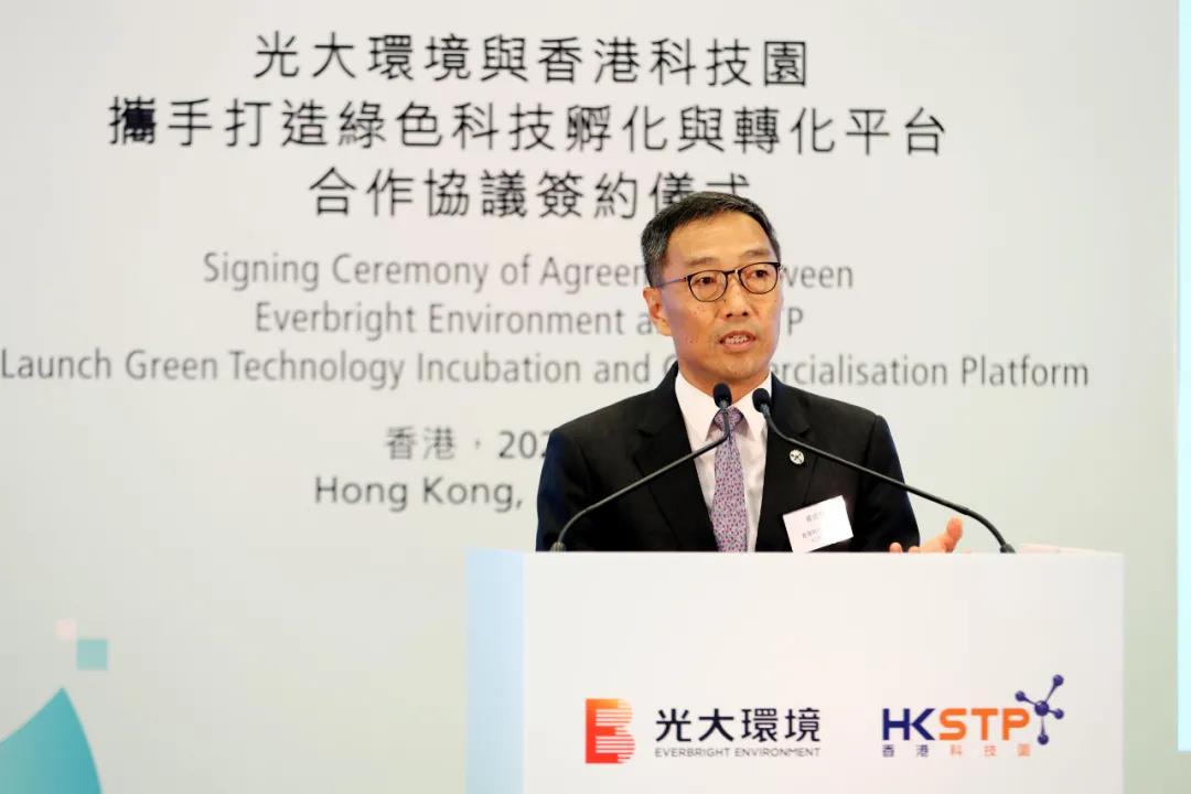 光大环境董事会主席王天义指出:「光大环境此次与香港科技园达成合作,对于合作双方以及香港的科技初创企业而言,具有多方共赢的重要意义。光大环境十多年来潜心耕耘环境、资源和能源领域,现已发展成为世界知名、中国最大的环境企业,在项目投资、绿色科技研发及应用转化、经营管理等方面积累了丰富经验。我们期待依托该绿色科技孵化与转化平台,与香港科技园加深合作,为香港绿色科技初创企业提供专业、务实可行的帮助和支持,助力这些企业更好地推进其创新技术的落地、推广和产业化应用。光大环境也希望以绿色科技创新为切入点,围绕公司近期提出的绿色金融、绿色投资、绿色创新、绿色制造、绿色一带一路的『5G』发展模式,进一步聚焦香港,推动绿色布局,成为香港绿色与可持续发展的坚定参与者和积极贡献者。」