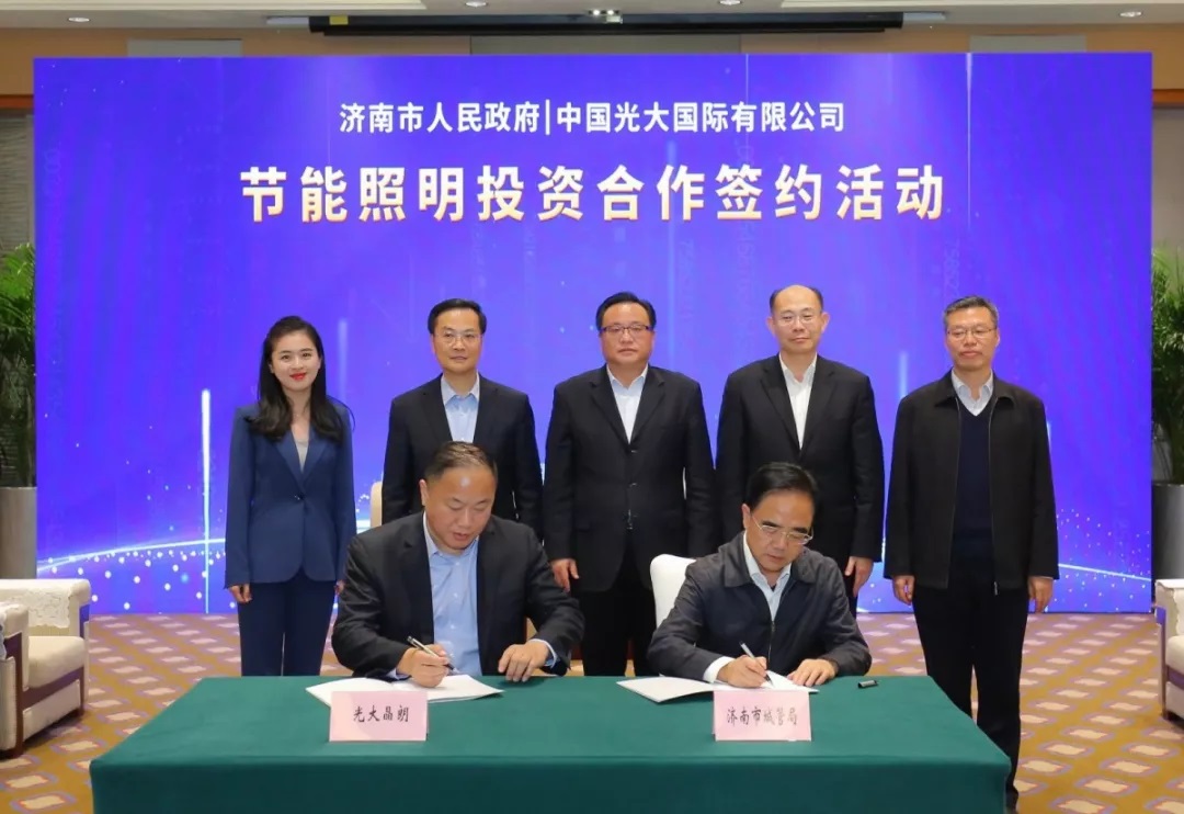 12月17日,光大国际与济南市政府在济南举行签约仪式,光大国际以合同能源管理方式(EMC)承接济南市区12万盏路灯节能亮化改造工程与常年运营维护,同时光大国际在济南投资设立节能路灯生产基地与研发基地。王天义总裁会晤济南市市长孙述涛并见证签约。济南市副市长王京文、秘书长尹清忠、市投资促进局、财政局、自然资源和规划局、城市管理局等主要领导,光大国际环境节能、环保能源、光大水务、生态资源板块等负责人出席本次活动。