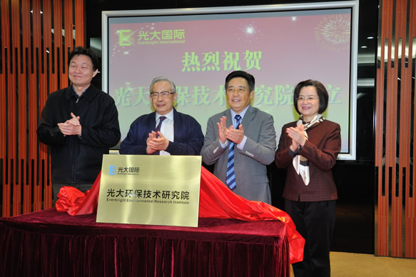 2015年1月9日,香港 - 中国光大国际有限公司(「光大国际」或「集团」)(香港股份编号:00257)欣然宣布,由集团投资设立的科研单位——光大环保技术研究院于2015年1月9日在深圳正式揭牌。光大国际行政总裁陈小平、中国环境科学学会秘书长任官平、深圳市科技创新委副主任邱宣、中国工程院及中国科学院两院院士石元春、共同为研究院揭牌,并表达了热烈的祝贺。