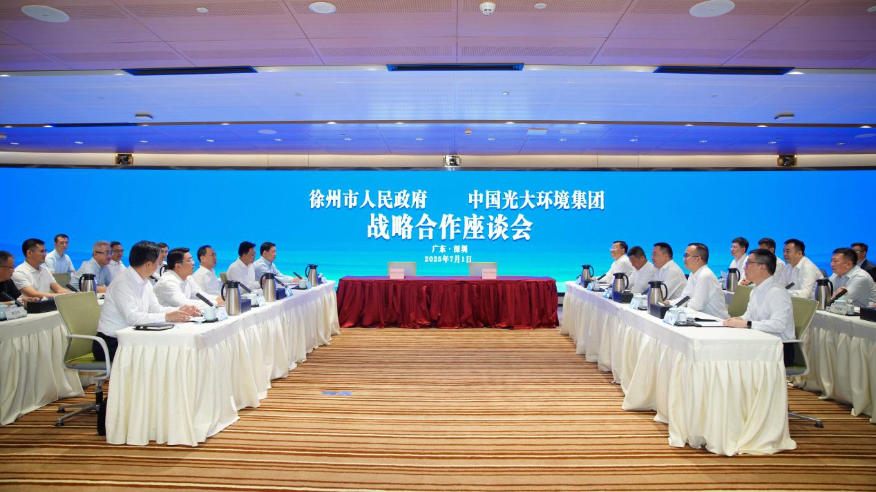 7月1日,徐州市委书记宋乐伟率队莅临光大环境深圳总部,与光大环境董事会主席王思联举行战略合作座谈,围绕固废处理及资源化利用、新能源开发与应用、产业园区建设等领域展开务实交流,并签署战略合作协议。徐州市委常委、市委秘书长吴卫东,副市长曹智,光大环境副总裁李昌富出席会谈。