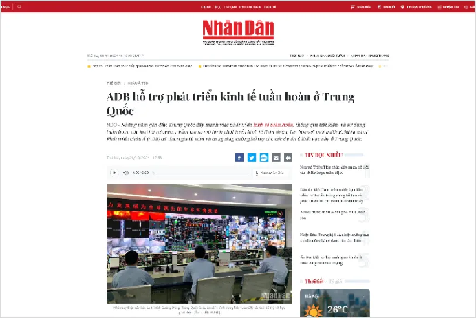 越南通讯社通过视频和图片报道,突出光大环境与亚行在环境保护领域合作15年,推动中国乃至亚太地区固废管理的提升,并且创造了显著的社会和环境效益。